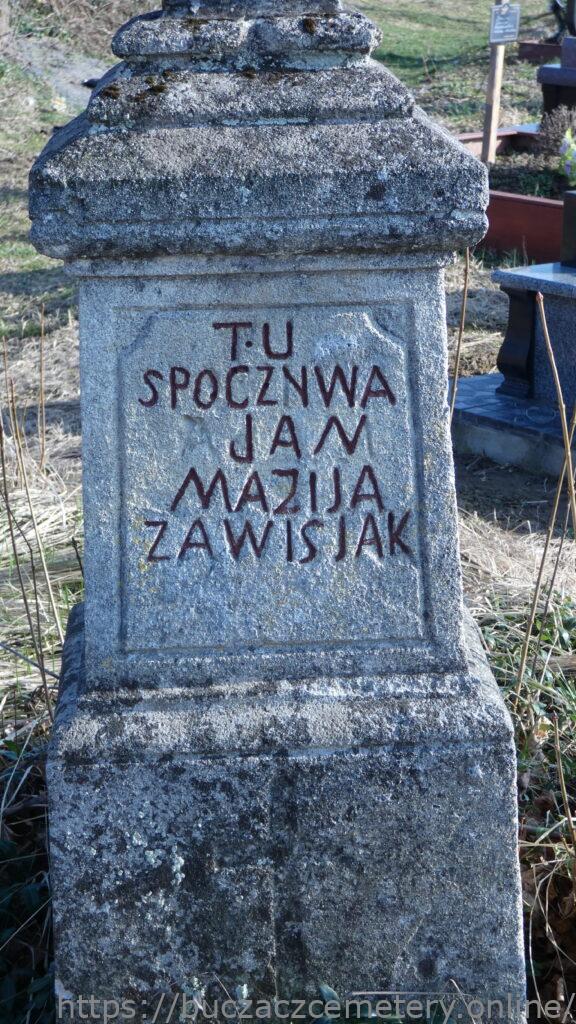 Місце поховання позначено хрестом на двоступеневому постаменті. Хрест на профільованому постаменті. Звисає на плечі, він виконаний рельєфно з вузлом зліва, над titulus. Перша сходинка цоколя з профільованими верхніми краями, на лицьовій стороні вирізьблений хрест. Друга сходинка цоколя вкрита чотирисхилим дахом. На лицьовій частині знаходиться рамка з вигравіюваним написом.