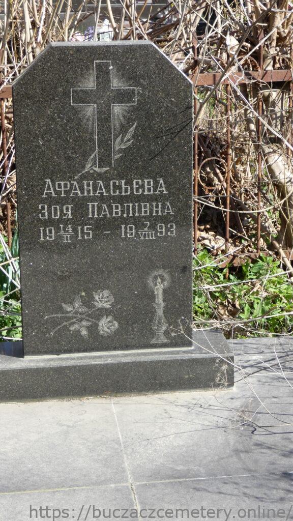 Напис: Афанасьєва Зоя Павлівна 19.14/ІІ 15- 19 7/VIII 93
