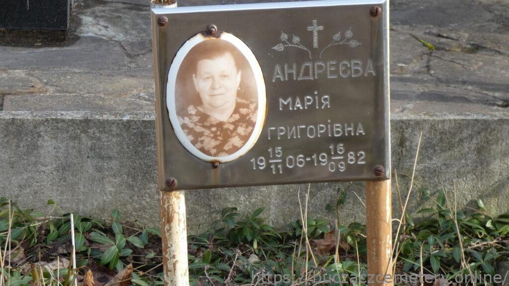 Напис: АНДРЕЄВА МАРІЯ ГРИГОРІВНА 15.11.1906-19.09.1982