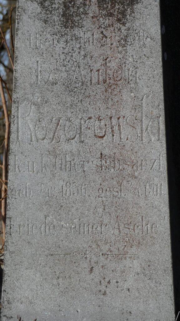 Hier ruht In Gott / Dr Anton / Rozorowski / k.u.k. Oberstabsarzt / geb. „12. 1856. gest. 2./1. 1911 / Friede Seiner Asche //.