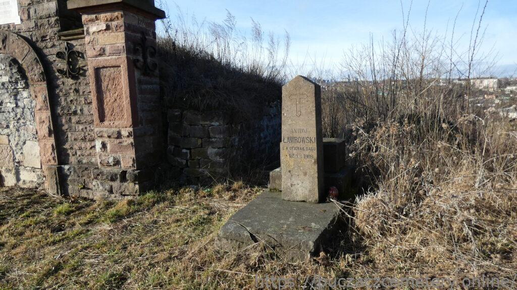 ANTONI / ŁAWROWSKI / C.K. OFICYAŁ SĄDU / * 1859. + 1909. //.