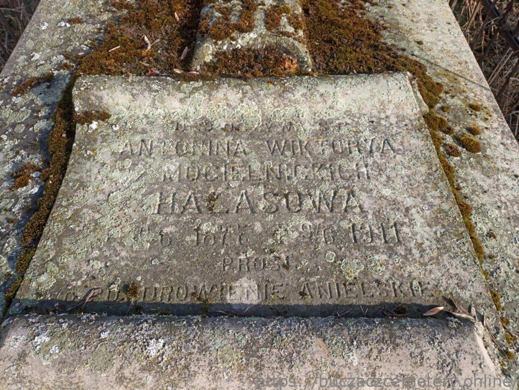1.1. TU SPOCZYWA SP / ANTONINA WIKTORYA / z MOGIELNICKICH / HAŁASOWA / * 18/6 1877 + 9/6 1911 / PROSI O POZDROWIENIE ANIELSKIE //.