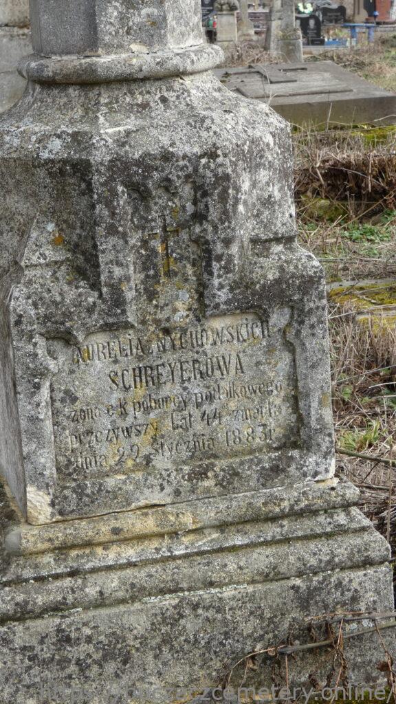 AURELIA Z WYCHOWSKICH / SCHREYEROWA / żona c.k. poborcy podatkowego / przeżywszy lat 44 zmarła / dnia 22 Stycznia 1883 r //.
