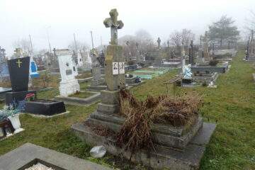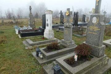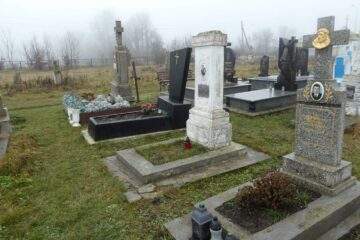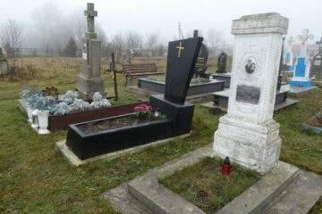 Подивитися на карті Номер могили: 189 Номер кварталу: 1 Похований (на): Пшивий Єфрем Антонович Пшива Анна Ільківна Матеріал: Бетон/залізобетон/мармурова крихта/граніт