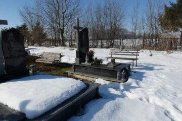 Номер могили: 375Номер кварталу: 1Похований (на): Швед Тереза Юліанівна 17.11.1942-25.04.2019 Швед Степан Володимирович 06.05.1944-16.12.2017Напис: Вічна пам’ятьМатеріал: Граніт/Латунь ПЕРЕГЛЯНУТИ НА КАРТІ