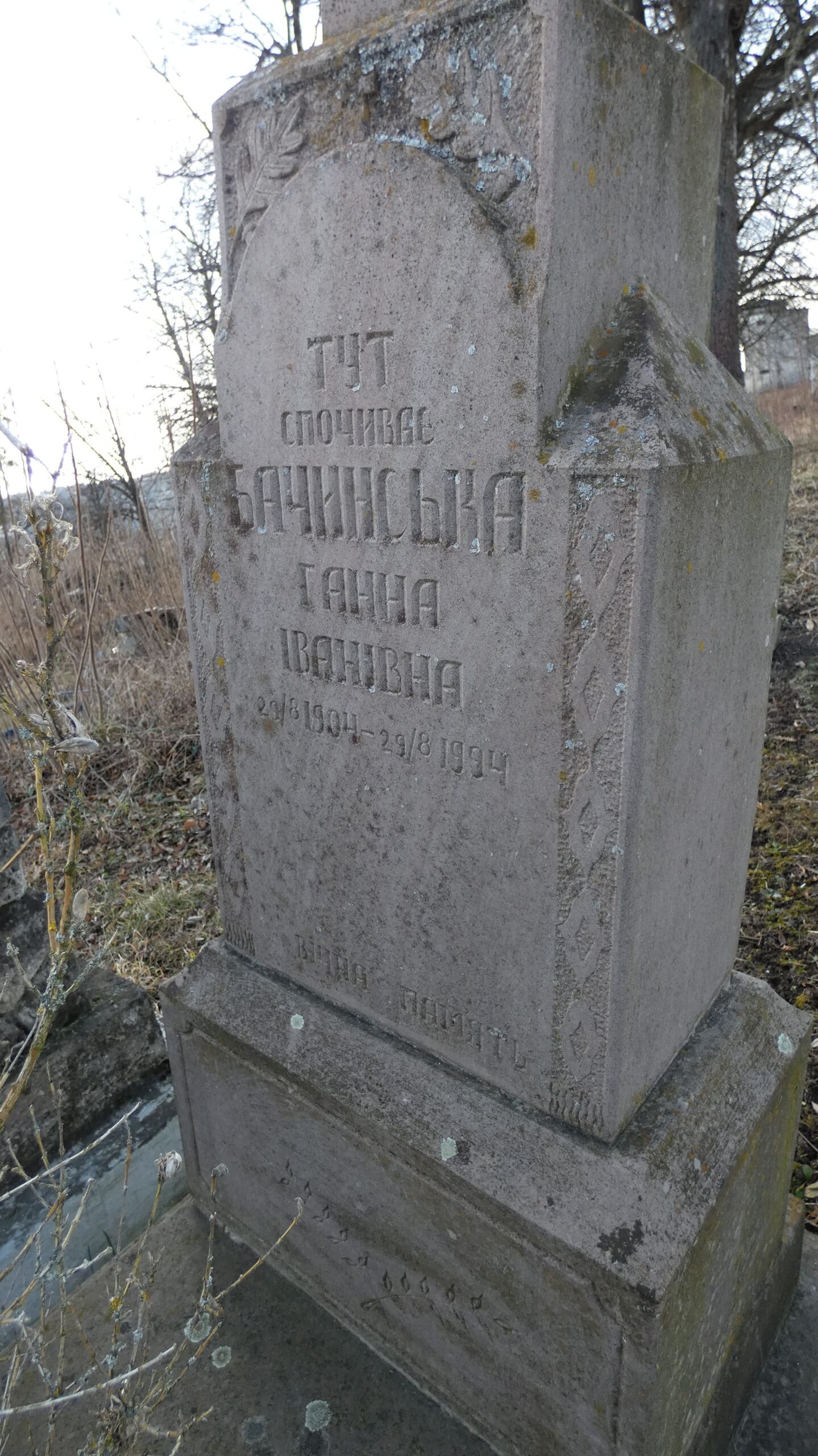 Похований (на): Бачинська Ганна Іванівна 29.08.1904-29.08.1994