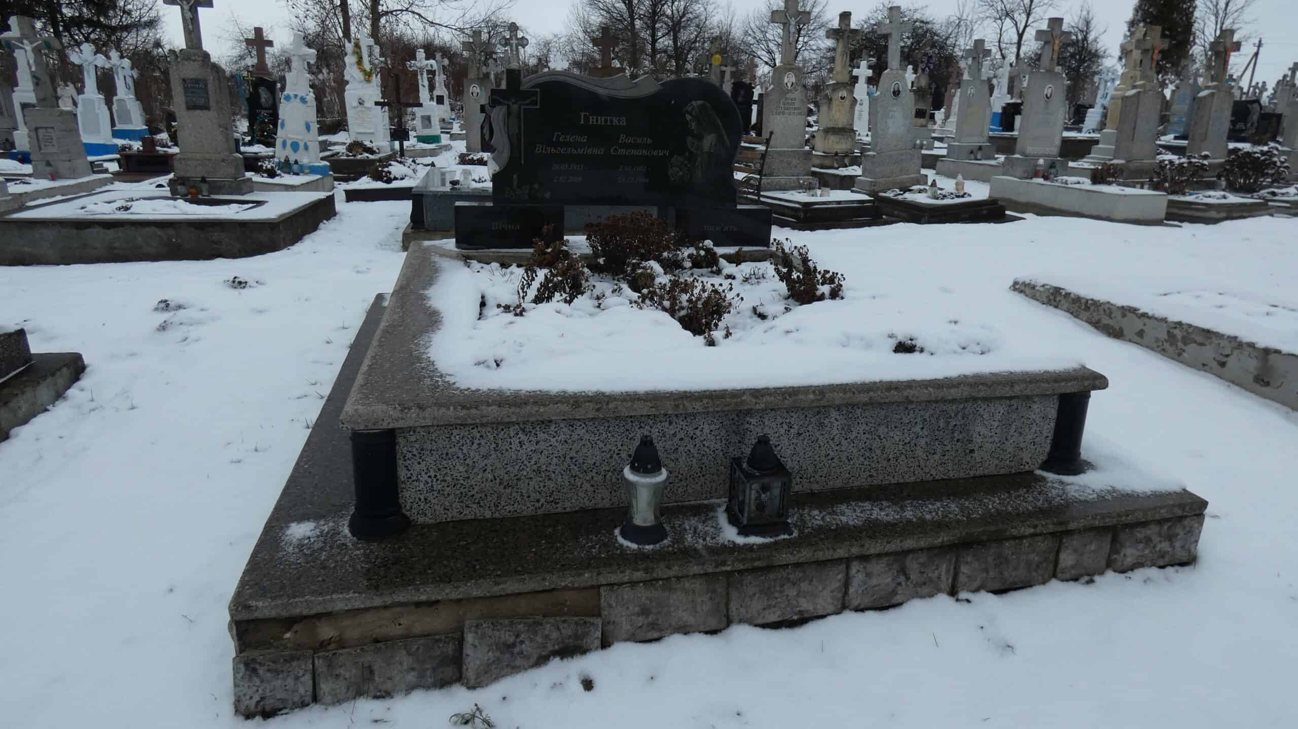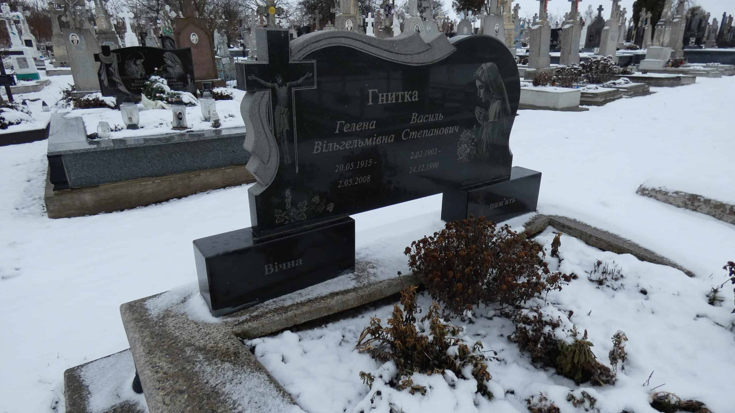 Похований (на): Гнитка Гелена Вільгльмівна 20.05.1915-02.05.2008 Гнитка Василь Степанович 2.02.1902-24.12.1990