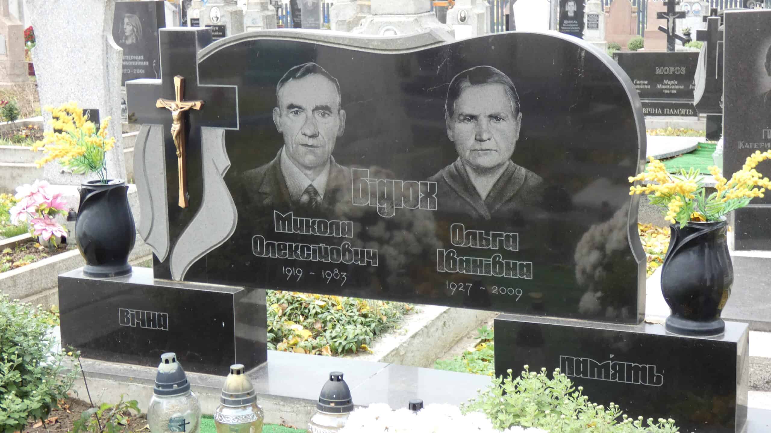Похований (на): Бідюх Микола Олексійович 1919-1983- Бідюх Ольга Іванівна 1927-2009