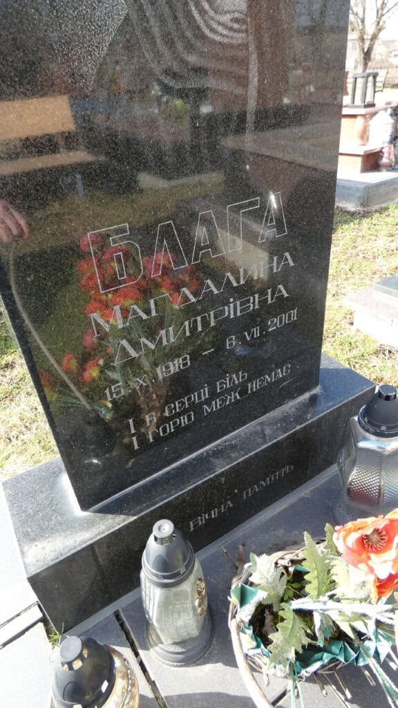 Похований (на): Блага Магдалина Дмитрівна 15.10.1918-06.07.2001