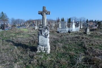 Місце поховання позначено хрестом на двоступеневому постаменті та двоступеневій основі. Скошений хрест з виступами на широкому постаменті, оточений з чотирьох боків невеликими пірамідками. На плечах звисає хустка з вузлом під правою рукою. Перша сходинка цоколя з профільованими верхніми краями. Другий Читати далі