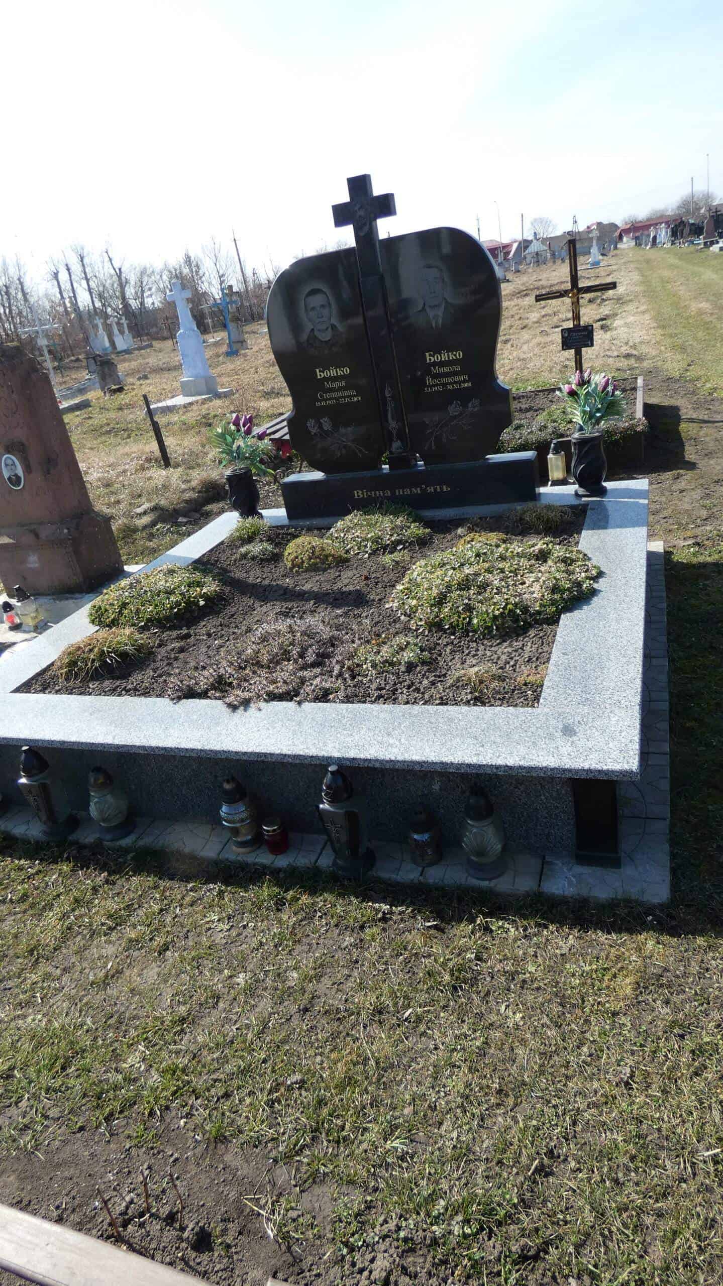 Похований (на): Бойко Марія Степанівна 15.11.1933 — 22.1V.2008 Бойко Микола Йосипович 5.1.1932 — 30.XI.2008
