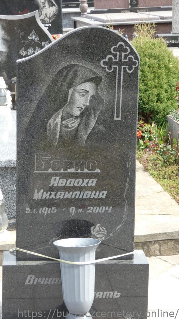 Напис: Борис Явдоха Михайлівна 5.І.1915-9.ІІ.2004/Вічна пам’ять/