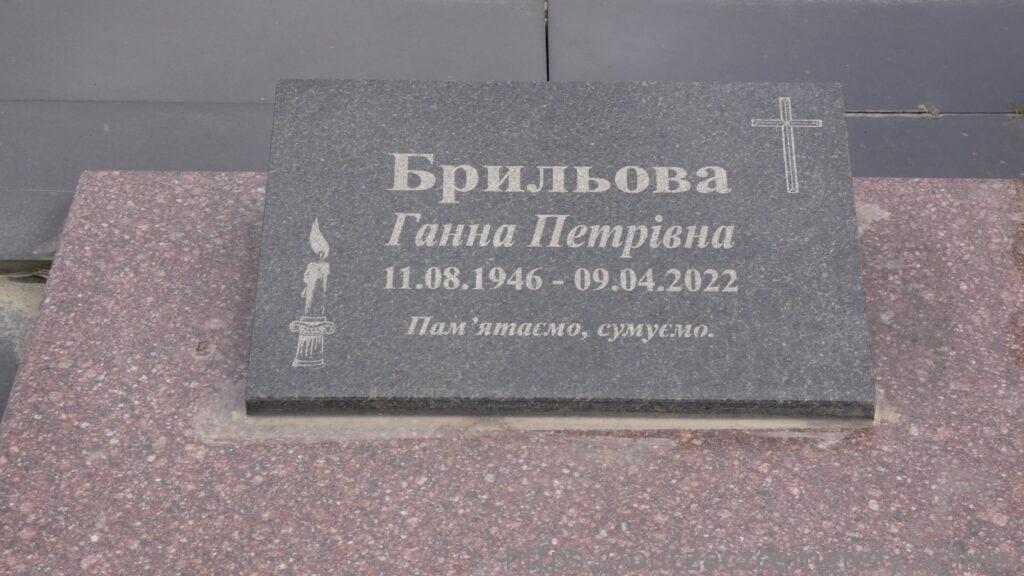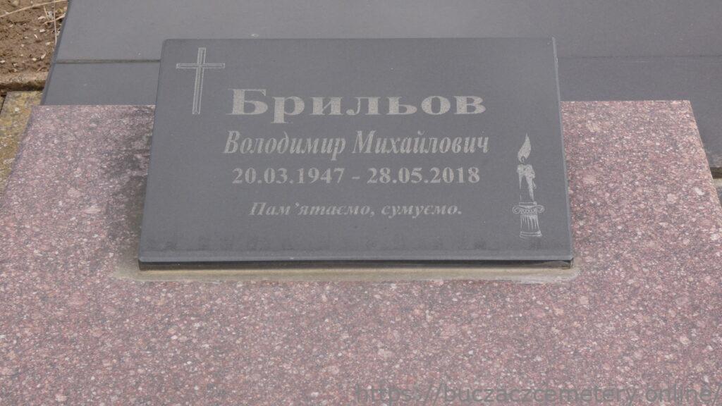 Напис: Брильов Володимир Михайлович 26.03.1947-28.05.2018/ Брильова Ганна Петрівна 11.08.1946-09.04.2022/ Брильов Михайло Володимирович 9.09.1976-2.03.2011//