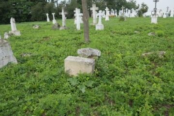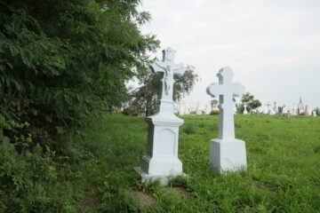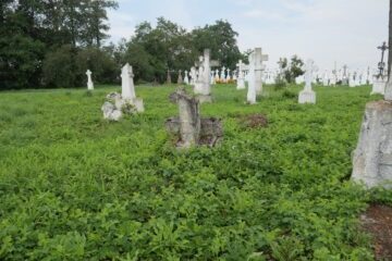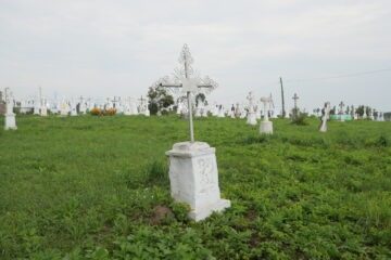 Місце поховання позначене надгробком, у голові якого хрест на двоступінчастому постаменті. Хрест із восьмикутними раменами, з вкладками, на високому ліпному постаменті. У верхній частині хреста викарбувано напис INRI. Перша сходинка цоколя з профільованими верхніми краями. Друга сходинка постаменту з ліпниною переходить у навіс. Спереду панель з рейковою рамкою, на ній Читати далі
