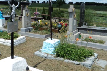 Подивитися на карті Номер могили: 833 Номер кварталу: 2 Похований (на): Микуляк Оля Іванівна 20.VII.1964 – 25.VII.1965 Напис: Тихо вітер не шуми Нашу доню не буди. Тут в могилі під хрестом Спить наша Оля вічним сном Вічна пам’ять Матеріал: Граніт/бетон/залізобетон
