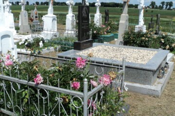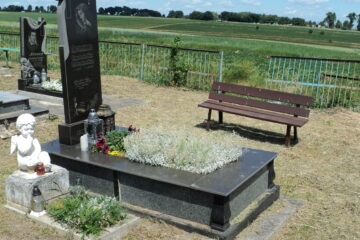 Подивитися на карті Номер могили: 783 Номер кварталу: 2 Похований (на): Тринька Марія 1901-1983 Напис: Вічна пам’ять про тебе Матеріал: Мармурова крихта/бетон/залізобетон