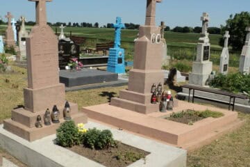 Подивитися на карті Номер могили: 714 Номер кварталу: 2 Похований (на): Мельник Степан Васильович 1912-1989 Мельник Марія Михайлівна 1917-1994 Напис: Вічна їм пам’ять Матеріал: Червоний пісковик/бетон