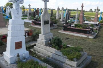 Подивитися на карті Номер могили: 1247 Номер кварталу: 2 Похований (на): Тринька Ганна Григорівна 1910-1945 Олексів Ярослава Василівна 1936-2001 Матеріал: Мармурова крихта/бетон/залізобетон/граніт