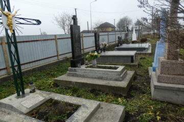 Подивитися на карті Номер могили: 8 Номер кварталу: 1 Похований (на): Островерха Ганна Йосипівна 15.06.1912-22.07.1998 Загородна Ганна Іванівна 08.04.1908-06.11.1992 Напис: Останній дар від рідних Вічная пам’ять Матеріал: Бетон/залізобетон/мармурова крихта/граніт