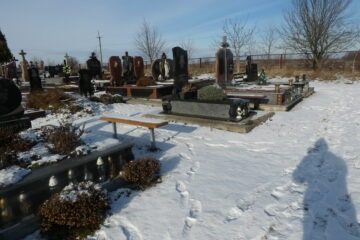 Подивитися на карті Номер могили: 174 Номер кварталу: 2 Похований (на): Далєвський Іван Васильович 26.06.1938-17.05.2017 Далєвська Анастасія Антонівна 30.07.1936 Напис: В скорботі голови схиляєм,/ Сумуєм, Любим, Памʼятаєм… Матеріал: Граніт/латунь