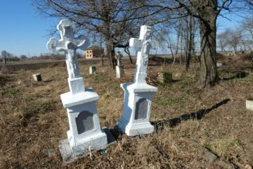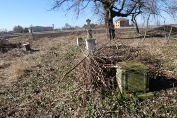 Подивитися на карті Номер могили: 1299 Номер кварталу: 1 Похований (на): [А]нн[а] Соловій і донька єї Юстина Матеріал: Бетон/залізобетон/