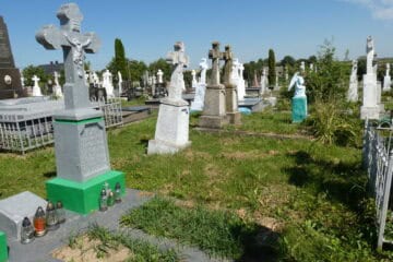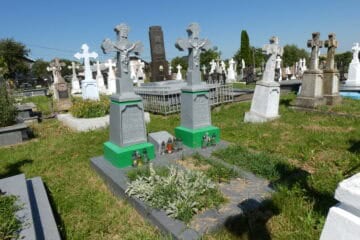 Подивитися на карті Номер могили: 253 Номер кварталу: 1 Похований (на): Тимчишин Кароліна Л. 1892-1970 Гринчишин Василь Павлович 1887-1978 Тимчишин Марійка 1980 Напис: Просить о молитву Матеріал: Бетон/залізобетон/