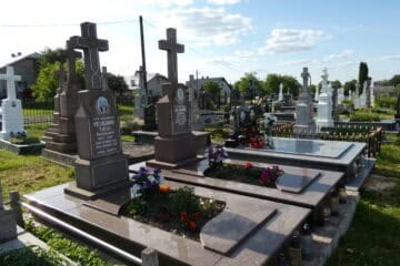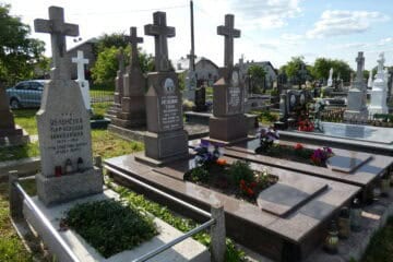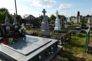 Подивитися на карті Номер могили: 1084 Номер кварталу: 1 Похований (на): Жатковска Катерина 1898-1843 Напис: Спи спокійно дорога наша мамо Матеріал: Бетон/залізобетон/