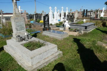 Подивитися на карті Номер могили: 357 Номер кварталу: 1 Похований (на): Нетребяк Розалія бр 1904-1980 Напис: Вічна пам’ять Матеріал: Бетон/залізобетон/