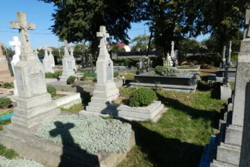 Подивитися на карті Номер могили: 33 Номер кварталу: 1 Похований (на): Гнатів Анна 1928-1986 Гнатів Марія 1907-1998 Напис: Вічна пам’ять Матеріал: Бетон/залізобетон/мармурова крихта/червоний пісковик