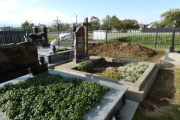 Подивитися на карті Номер могили: 221 Номер кварталу: 1 Похований (на): Мельничук Степанія Михайлівна 09.01.1940 Мельничук Михайло Тимофійович 08.10.1941- 11.07.1991 Напис: Останній дар від дочки, зятів, онуків. Матеріал: Бетон/Залізобетон/Граніт