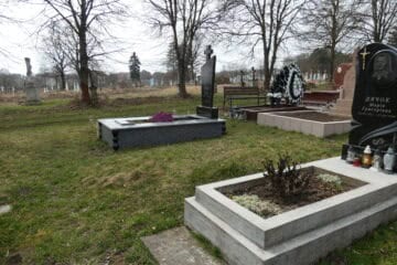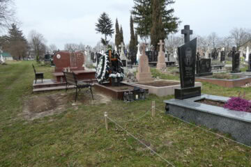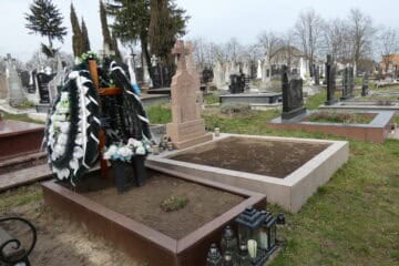 Подивитися на карті Номер могили: 1079 Номер кварталу: 1 Похований (на): Горин Михайло Йосипович 1911-1996 Горин Пелагея Григорівна 1924 Напис: Вічна пам’ять Матеріал: Бетон/залізобетон/червоний пісковик/керамограніт