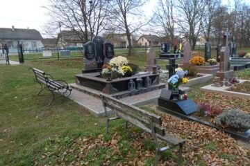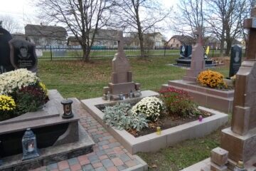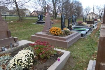 Подивитися на карті Номер могили: 353 Похований (на): Тимків Василь Й. 18.3.1933-2.8.2001 Тимків Пелагея М. 13.4.1930 Матеріал: червоний пісковик/керамограніт