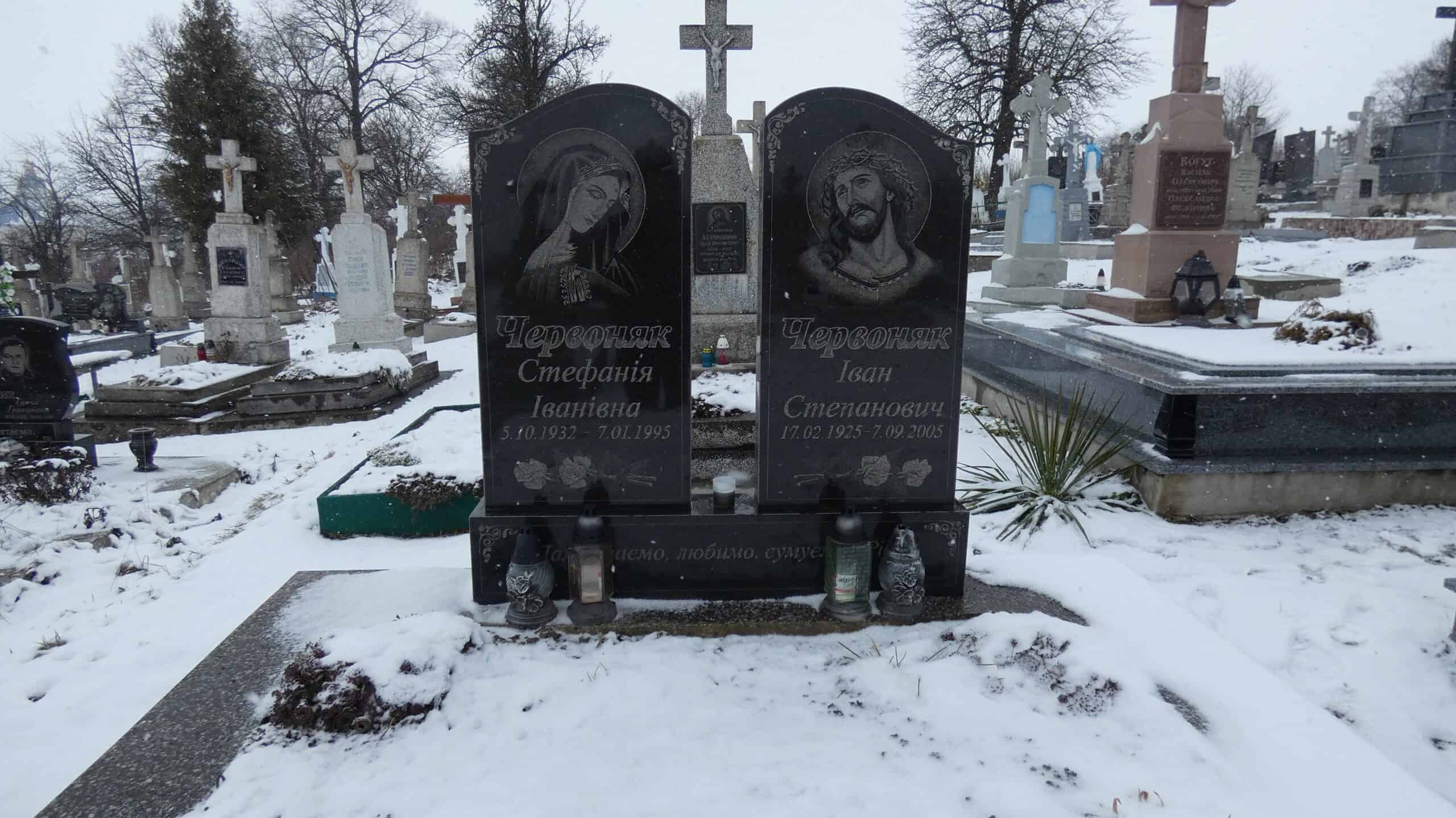 Похований (на): Червоняк Стефанія Іванівна 5.10.1932-7.01.1995 Червоняк Іван Степанович 17.02.1925-07.09.2005