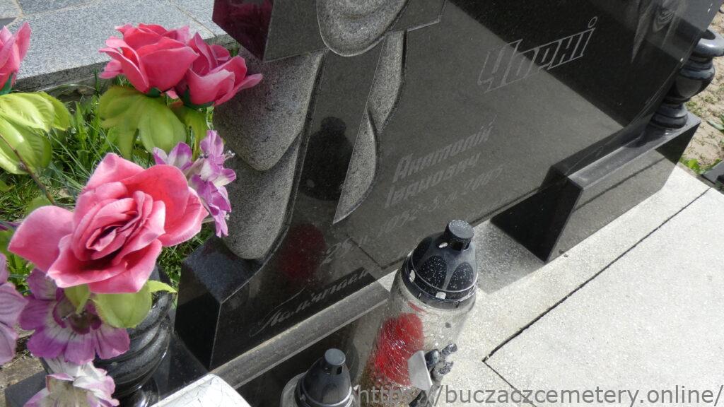 Напис: Чорні Анатолій Іванович 25.ІІ.1952-8.VII.2005/Пам’ятаємо, любимо, сумуємо…/