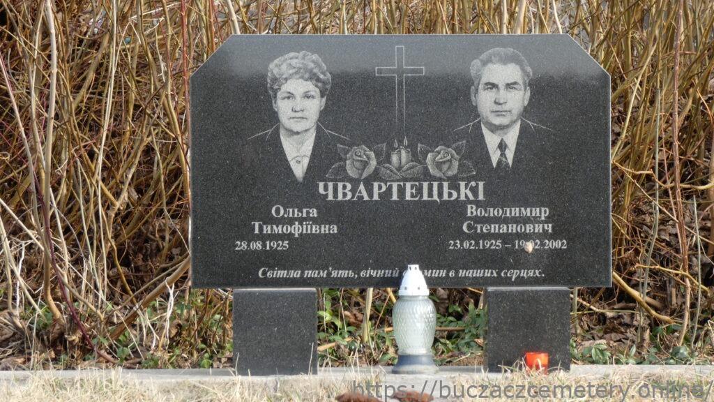 ЧВАРТЕЦЬКІ/ Ольга/ Тимофіївна/28.08.1925/ Володимир/ Степанович/ 23.02.1925-19.02.2002//Світла пам’ять вічний спомин в наших серцях//.