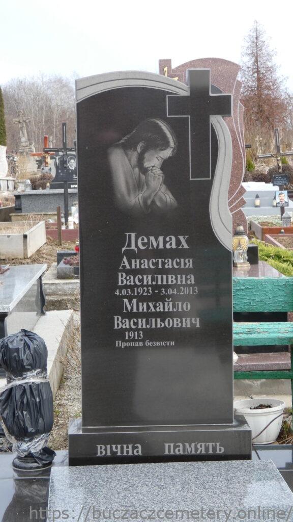Напис: Демах Анастасія Василівна 04.03.1923-3.04.2013/ Михайло Васильович 1913/Пропав безвісти/