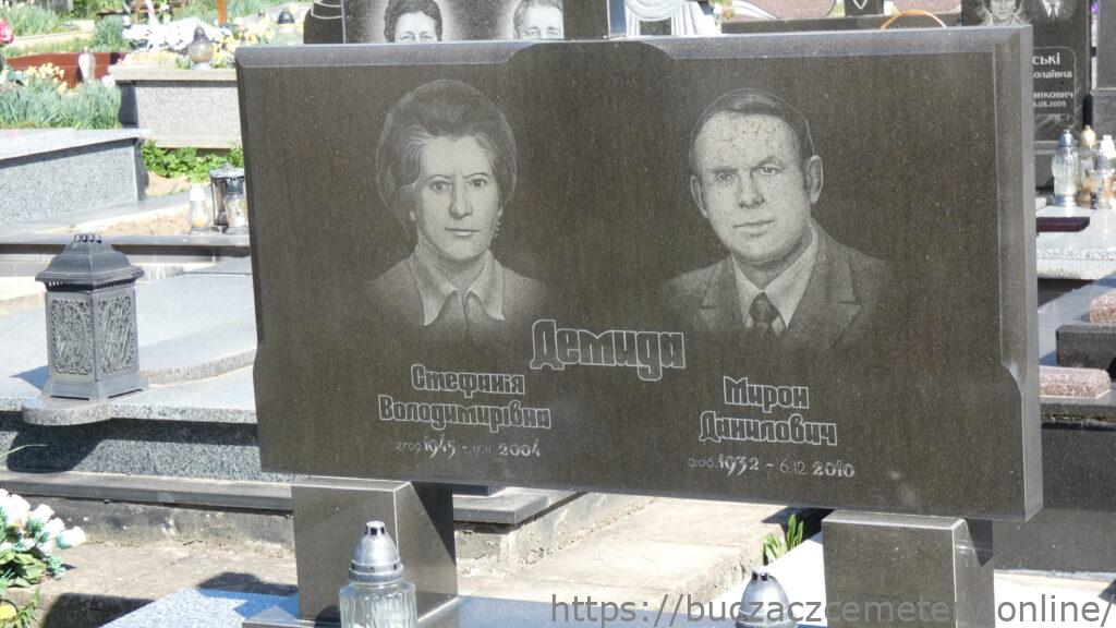 Напис: Демида Стефанія Володимирівна 27.09.1945-17.11.2004/ Мирон Данилович 9.06.1932-6.12.2010/
