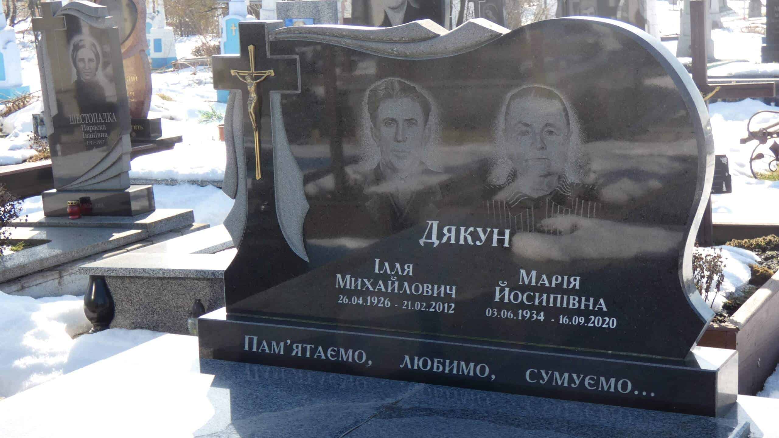 Похований (на): ДЯКУН ІЛЛЯ МИХАЙЛОВИЧ 26.04.1926 — 21.02.2012 ДЯКУН МАРІЯ ЙОСИПІВНА 03.06.1934 — 16.09.2020