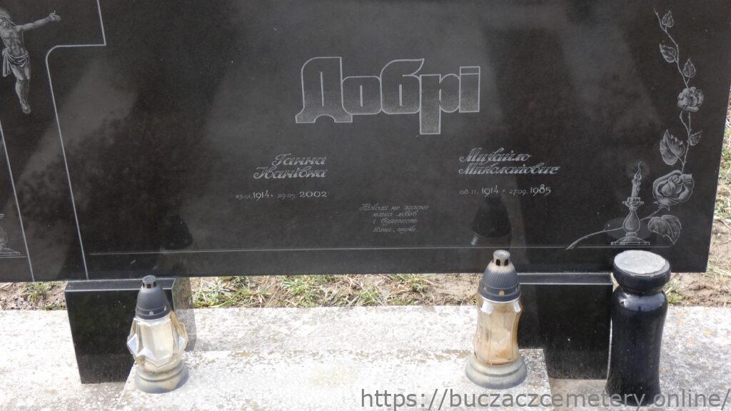 Напис: Добрі Ганна Іванівна 23.01.1941-29.05.2002/Михайло Миколайович 08.11.1914-27.09.1985//.