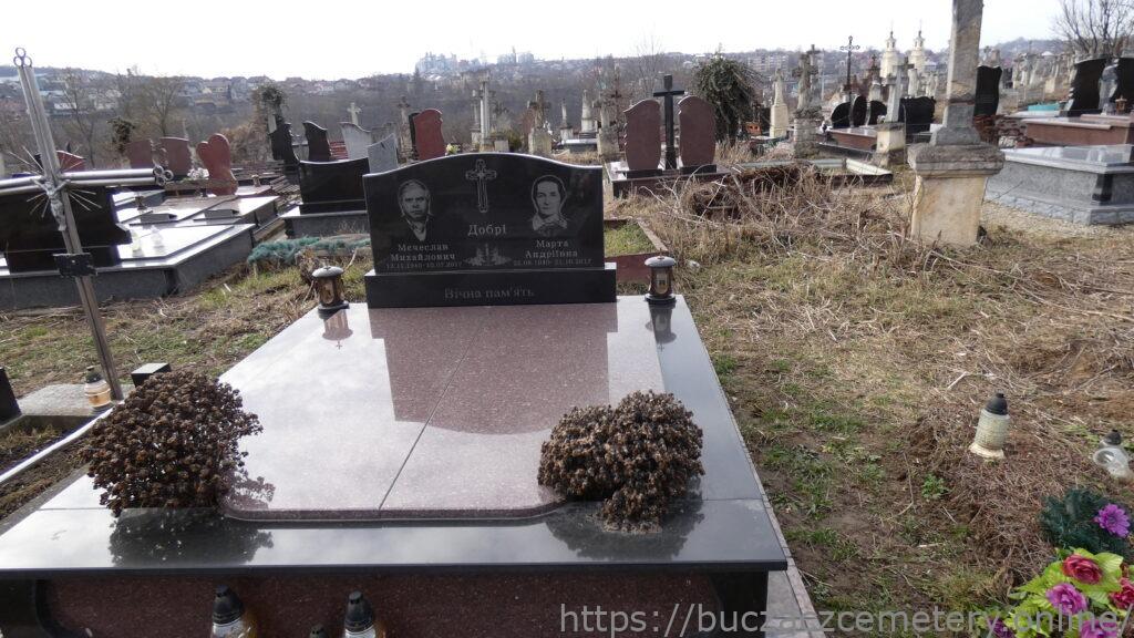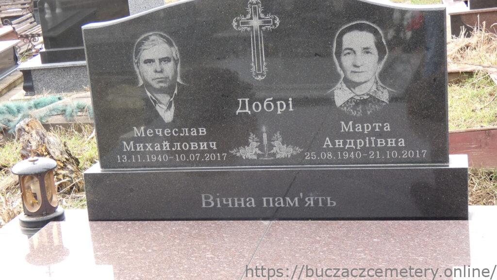 Напис: Добрі Мечеслав Михайлович 13.11.1940-10.07.2017/ Марта Андріївна 25.08.1940-21.10.2017//Вічна пам’ять//.