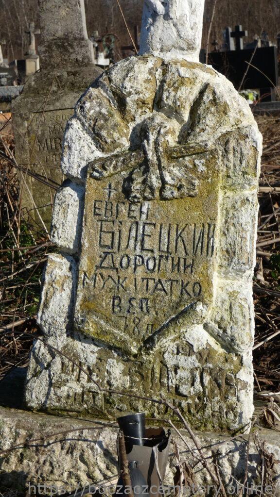 Напис: ЕВГЕН БІЛЕЦЬКИЙ ДОРОГИЙ МУЖ І ТАТКО ВЕП 78 п./ 1967 [ ] БІЛЕЦЬКА