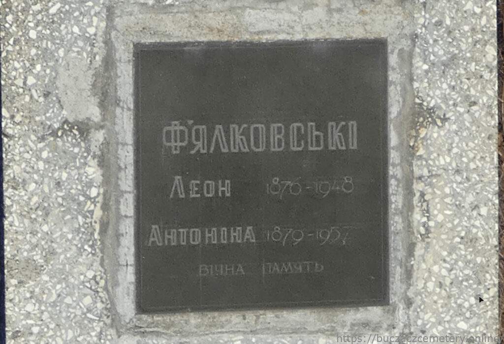 Напис: Ф’ЯЛКОВСКІ Леон 1870-1948/ Антоніна 1879-1957/ ВІЧНА ПАМ’ЯТЬ//