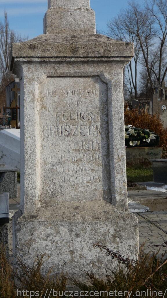 TU SPOCZYWA / Ś. P. / FELIKS / GRUSZECKI / * 13/1 1814 / + 15/10 1866 / PROS / o MODLITWY //.