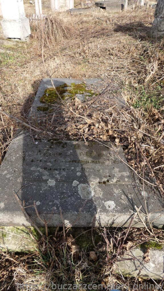 Місце поховання позначене надгробком із рельєфним хрестом і дошкою з вигравіюваним написом.