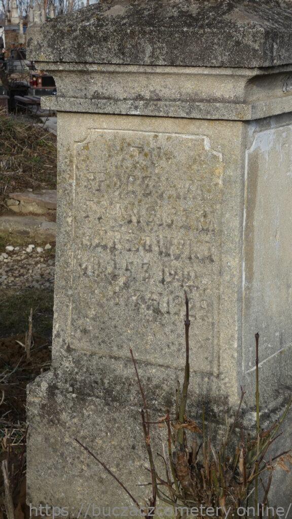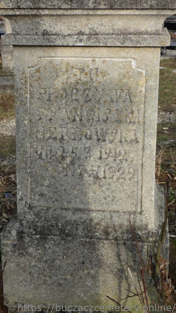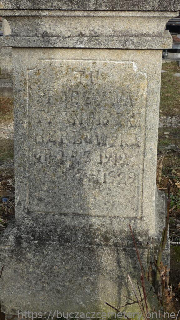 TU / SPOCZYWA / FRANCISZKA / HERBOWSKA / UR. 25.3.1912 / + 7.4.1929 //.