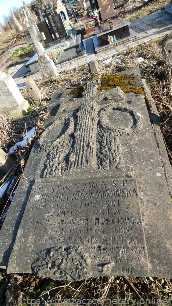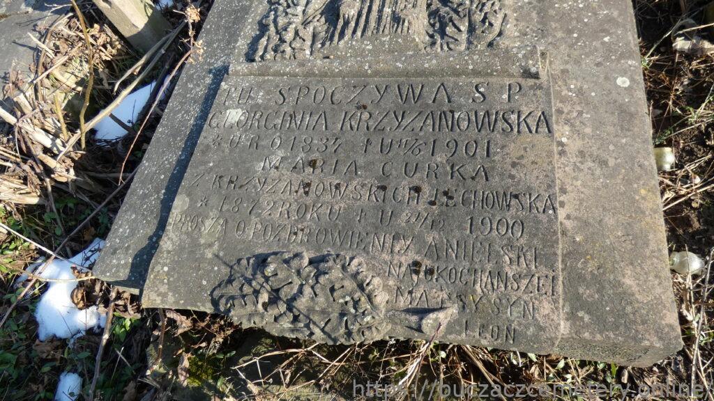 TU SPOCZYWAJĄ SP / GEORGINIA KRZYŻANOWSKA / * URO 1834 + U 11/6 1901 / MARIA CURKA / Z KRZYŻANOWSKICH LECHOWSKA / * 1872 + U 21/12 1900 / PROSZĄ O POZDROWIENIY ANIELSKI / NAJUKOCHAŃSZEI / MATCY SYN / LEON //.
