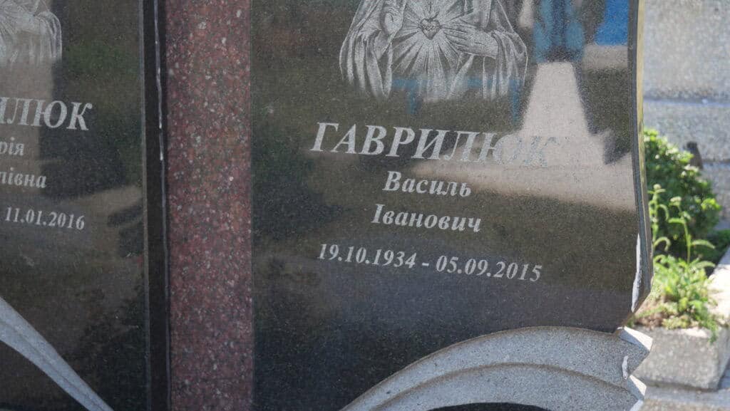 Похований (на): Гаврилюк Марія Василівна 19.10.1929 – 11.01.2016 Гаврилюк Василь Іванович 19.10.1934 – 05.09.2015