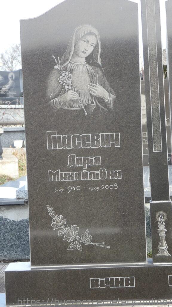 Напис: Гнасевич Дарія Михайлівна 3.03.1940-19.05.2008 Гнасевич Володимир Кіндратович 14.09.1936-4.02.2016// ВІЧНА ПАМ’ЯТЬ//