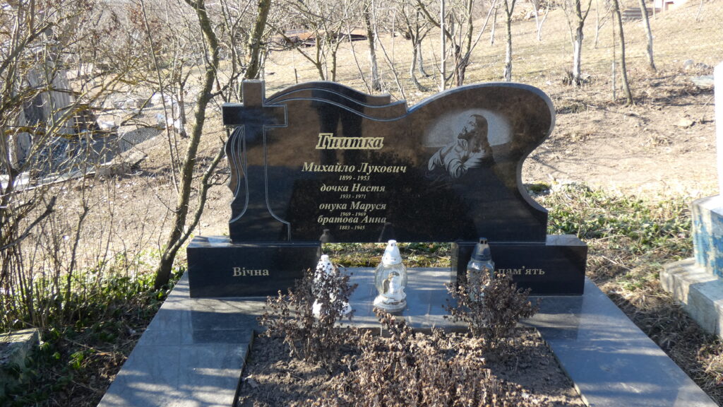 Похований (на): Гнитка Михайло Лукович 1899-1953 Гнитка Настя 1933-1971 Гнитка Маруся 1969-1969 Гнитка Анна 1883-1945