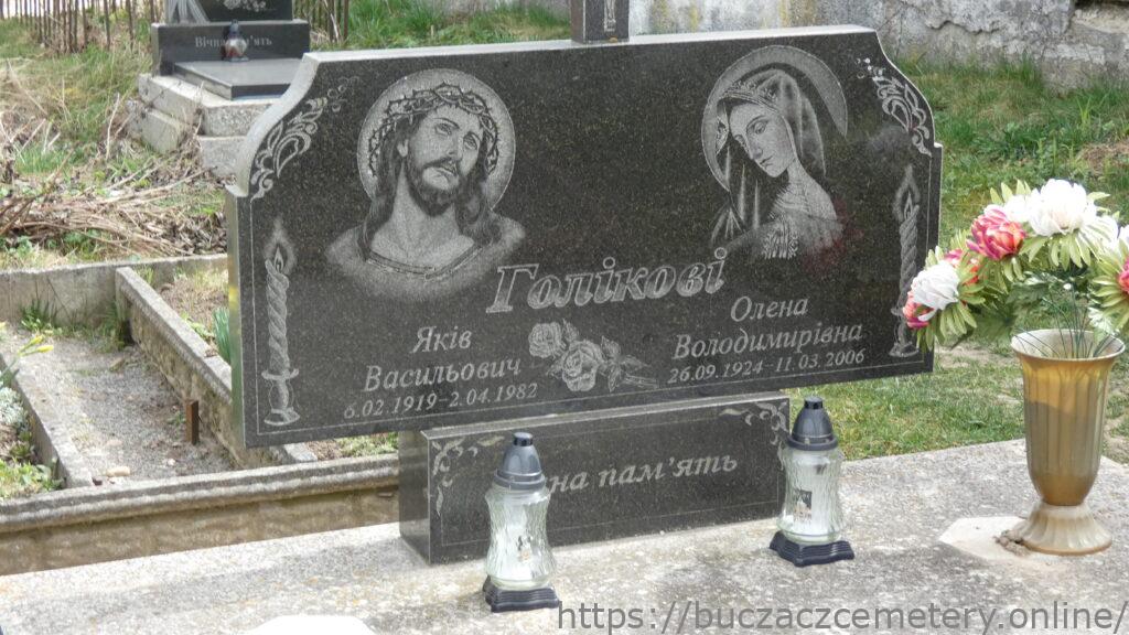 Напис: Голікові/ Яків Васильович 6.02.1919-2.04.1982/ Олена Володимирівна 26.09.1924-11.03.2006/Вічна пам’ять/